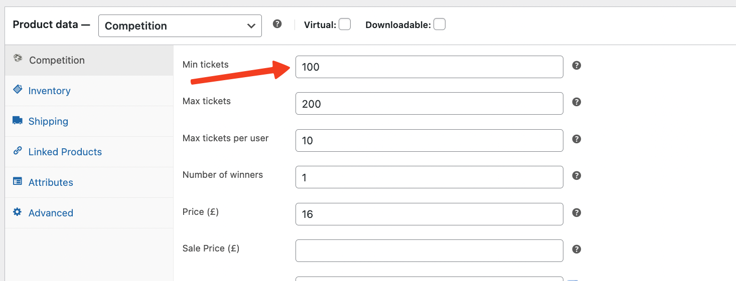 In the image below you must sell below 100 tickets to have the option to extend the competition as per your terms and conditions.